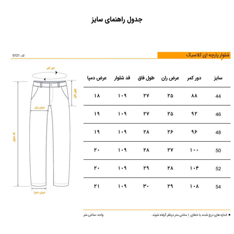اندازههای خود را با جدول زیر مقایسه کنید. اندازهها بر حسب سانتیمتر.